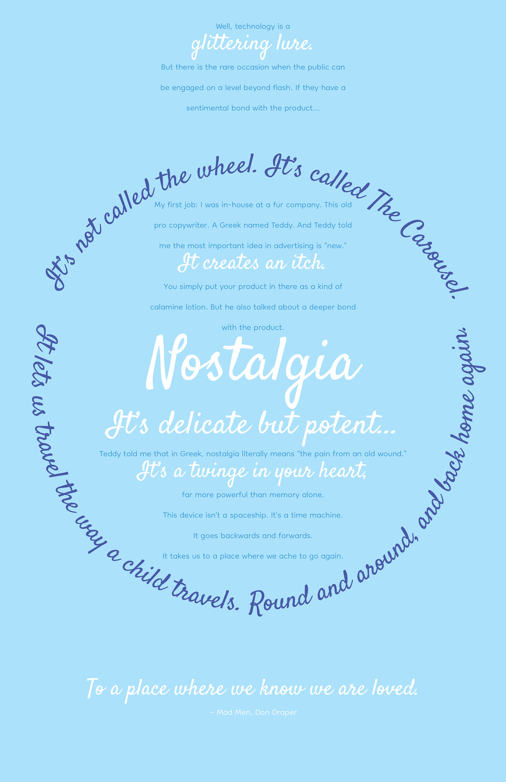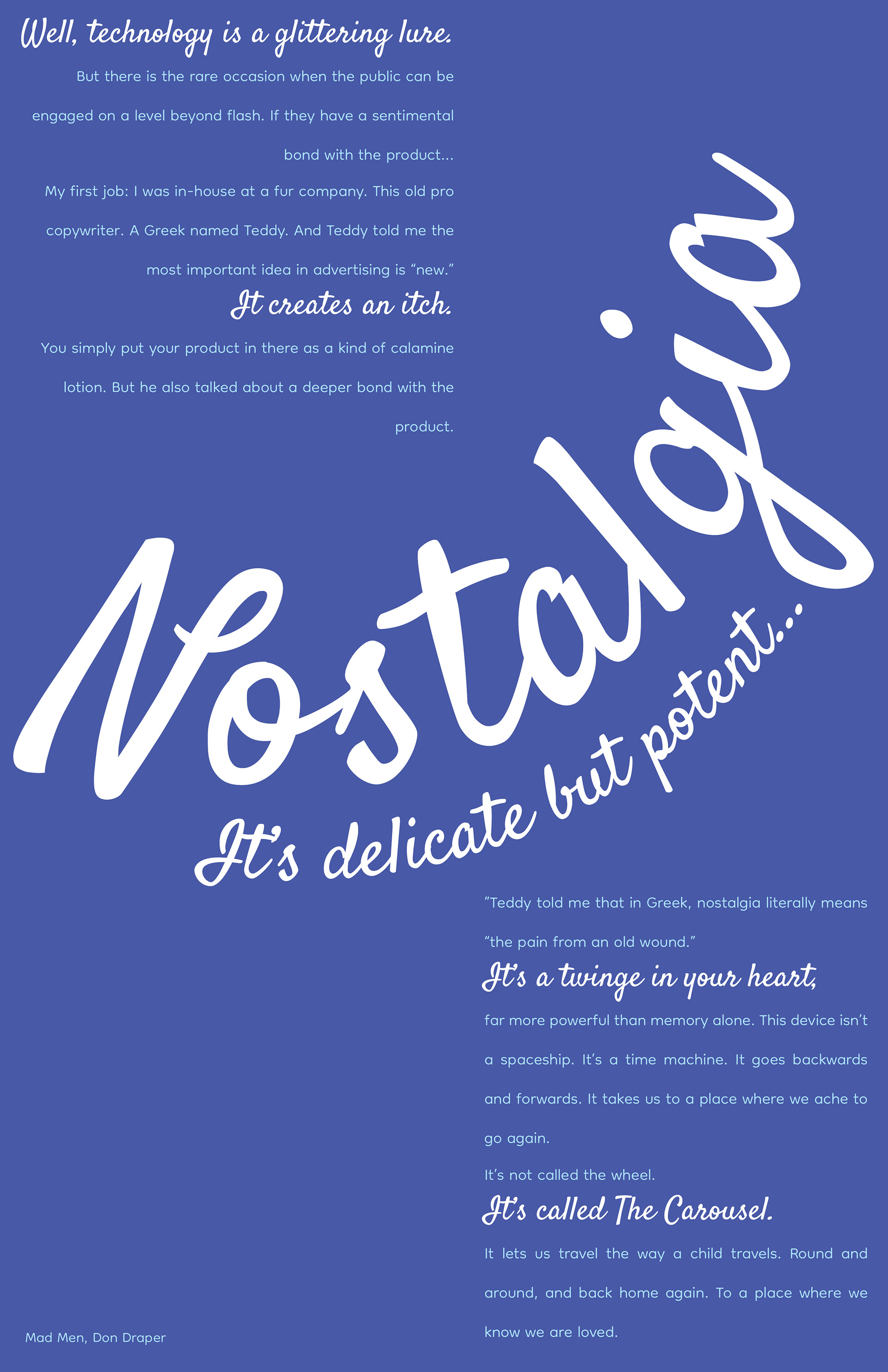 For this project, I was tasked with creating a series of three posters using the text from an assigned monologue. The monologue is from the television series "Mad Men."